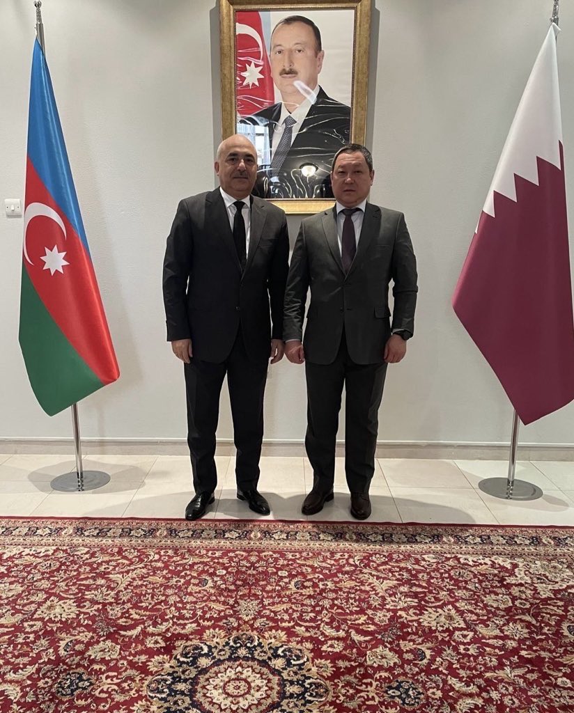 On 8 April 2026, H.E. Ambassador of the Kyrgyz Republic to the State of Qatar Mr.Aibek Toktobolotov paid a courtesy visit to H.E. Ambassador Dr. Adish Mammadov. During meeting the sides discussed issues of mutual interest and bilateral cooperation.